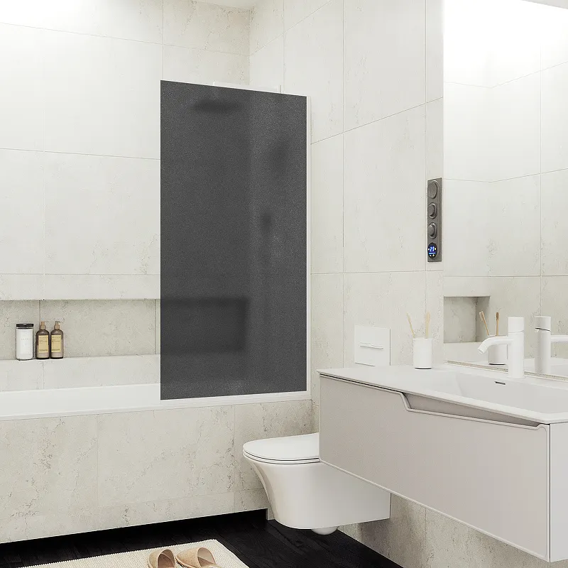 Шторка на ванну Maybah Glass MGV-85-1у 500x1400 в узком профиле.Характеристики: Цвет профиля: белый. Материал профиля: анодированный алюминий. Вид профиля: узкий. Исполнение полотна шторки: графитовое матовое закаленное стекло, толщиной 8 мм. Размеры (ШхВ): 500х1400 мм. Конструкция шторки: неподвижная. Ориентация: универсальная. Монтаж: пристенный, на борт ванны. В комплекте поставки: Закаленное стекло, цвет Графит матовый, толщина 8 мм 1400х500 мм - 1 шт. Профиль П-образный, цвет Белый - 2 шт. Комплект крепежа - 1 шт. Герметик силиконовый санитарный, бесцветный - 1 шт. Инструкция по монтажу - 1 шт.