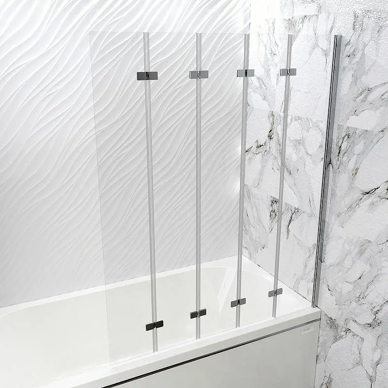 - Прозрачное стекло: Шторка на ванну выполнена из ударопрочного закаленного стекла, что обеспечивает долговечность и безопасность.