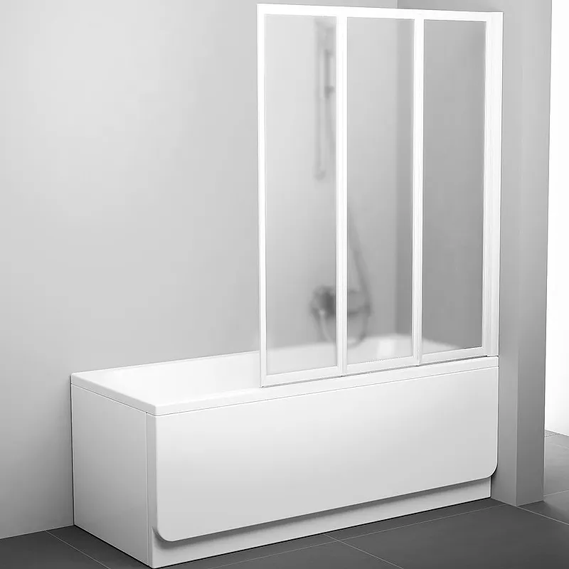 Шторка на ванну Ravak Behappy VS3 130 795V0100ZG.Характеристики: Ориентация: универсальная. Цвет исполнения профиля: белый. Материал профиля: алюминий. Витраж: безопасное стекло Grape (рифленое) толщиной 3 мм. Конструкция дверей: складная. Размер (ШхВ): 1300х1400 мм. В комплекте поставки: Шторка на ванну.