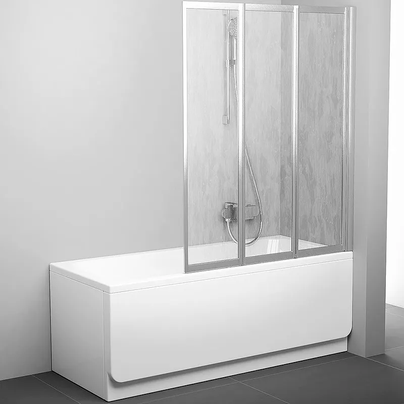 Шторка на ванну Ravak Behappy VS3 130 795V0U0041.Характеристики: Ориентация: универсальная. Цвет исполнения профиля: сатин. Материал профиля: алюминий. Витраж: пластик Rain. Конструкция дверей: складная. Размер (ШхВ): 1300х1400 мм. В комплекте поставки: Шторка на ванну.
