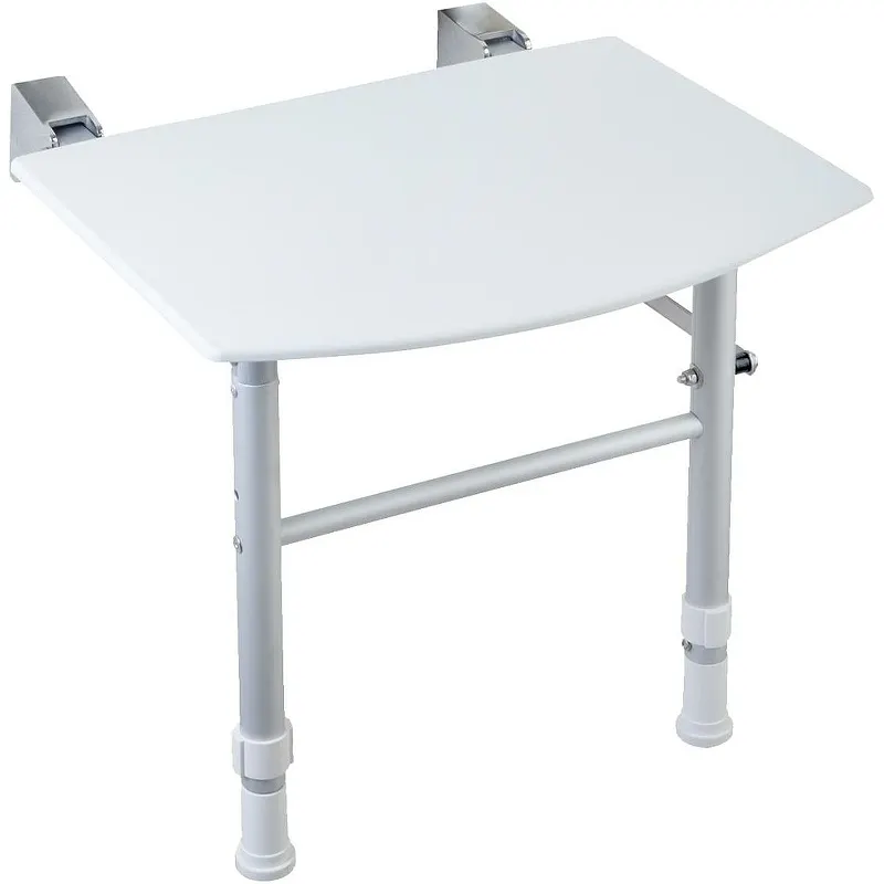 Сиденье для душа Nofer 15042.PIE.NBA складное с опорой.Складное сиденье для крепления на стене. С двумя регулируемыми ножками. Предназначен для ванных комнат, адаптированных для людей с ограниченными физическими возможностями.Характеристики: Цвет: белый. Материал: полипропилен с антибактериальной защитой. Конструкционный материал: нержавеющая сталь AISI 304. Размеры в разложенном виде (ШхВхД): 420х485х420 мм. Регулируемые ножки регулируемые: 390- 485 мм. Максимальная нагрузка: 120 кг (при правильном креплении к стене). Рекомендуемая высота установки: 45-50 см от зоны сиденья до пола. Назначение: для медицинских учреждений / для людей с ограниченными возможностями. Монтаж: настенный. В комплекте поставки: Сиденье для душа.