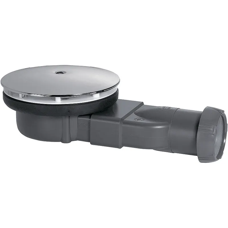 Сифон для низкого душевого поддона Jacob Delafon 120 E78168-CP c хромированной накладкой.Характеристики: Цвет: хром, серый. Материал: пластик. Для слива диаметром 9 cм. Декоративная накладка: глянцевый хром, D 12 cм. Высота без накладки: 5,8 см. Длина: 22,8 см. Горизонтальный выпуск. Стандарт подключения (вход): G 1 1/2. Диаметр подключения (выход): D 4 cм. Пропускная способность: 36 л/мин. В комплекте поставки: Сифон.