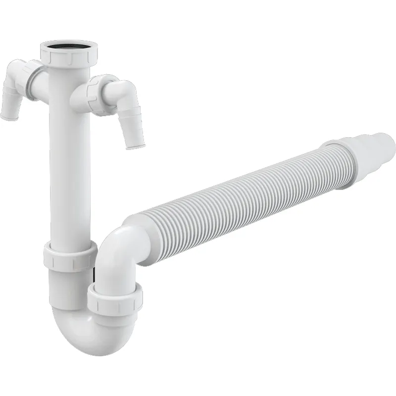 Сифон для кухонной мойки Alcaplast A84-DN50/40 изготавливается из высококачественных материалов.Подключение к канализационной трубе 40 мм или резьбовым соединением 7/4.Два штуцера для подключения стиральной машины или посудомоечной машины.Материал: полипропилен.Технические характеристики:Гидрозатвор: 64 mm.Сток воды: 60 l/min.Термическая устойчивость: 95 градусов.Диаметр шлангового штуцера: 17 23 mm.В комплекте поставки:Корпус сифона с двумя штуцерами.Гофрированный гибкий шланг.Резьбовое соединение 6/4 для подключения слива мойки или раковины.