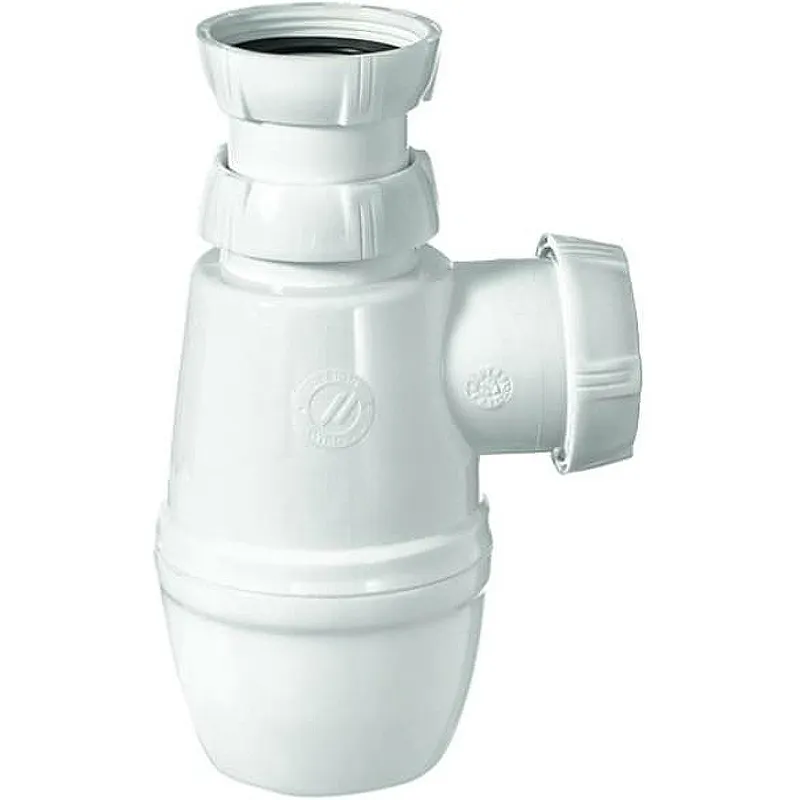 Сифон для кухонной мойки Wirquin Минор 30718023 — идеальное решение для эффективного водоотведения в вашей кухне. Этот сифон бутылочного типа изготовлен из качественного пластика и выполнен в белом цвете, что делает его долговечным и эстетичным. Сифон без выпуска оснащён мокрым затвором, обеспечивающим надёжную защиту от неприятных запахов.
