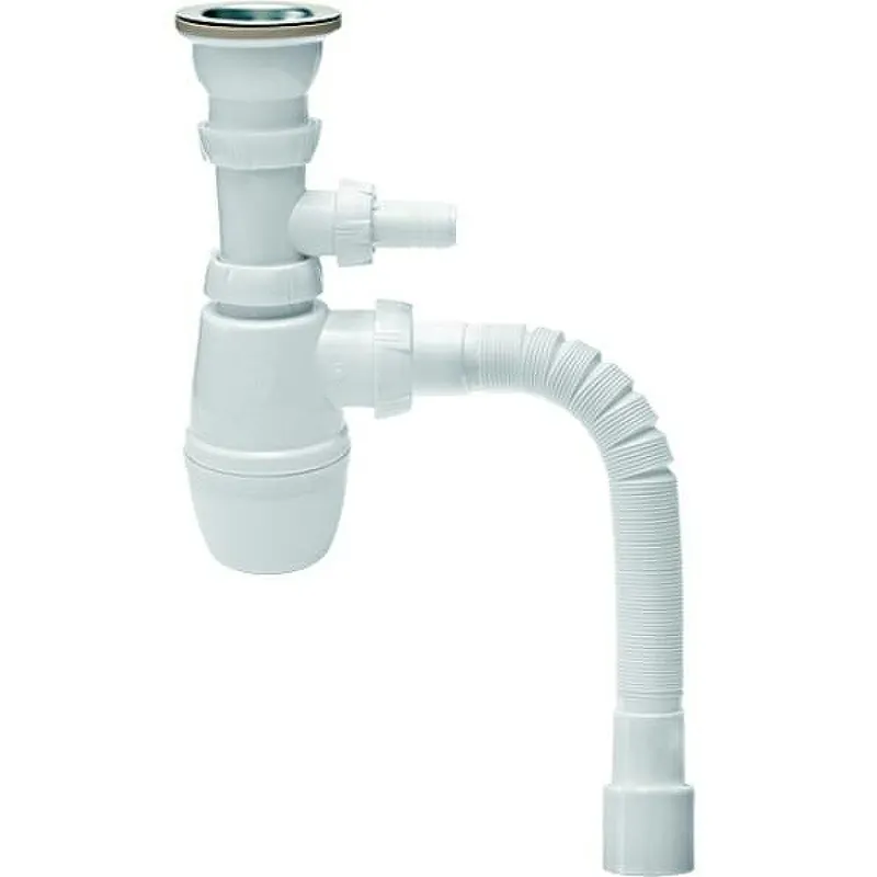 - Универсальность установки: Сифон для кухни с возможностью подключения как стиральной, так и посудомоечной машины.