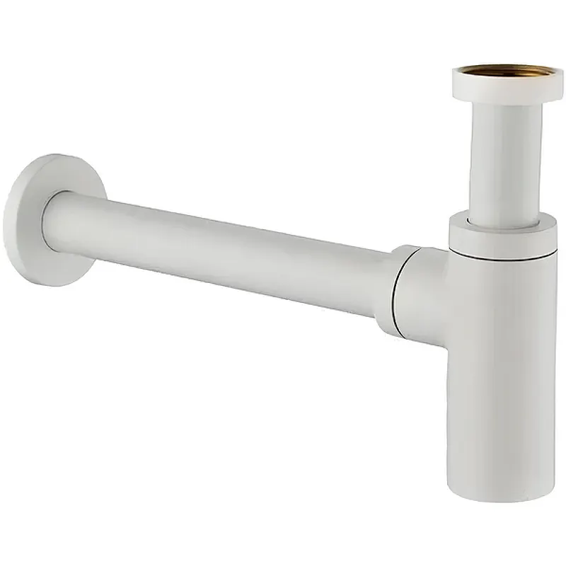 Сифон для раковины Remer 958LBO.Характеристики: Цвет: белый матовый (BO). Материал: латунь. Диаметр подключения: 32 мм. Сливной диаметр: G 1 1/4. Выпуск: горизонтальный. В комплекте поставки: Сифон для раковины.