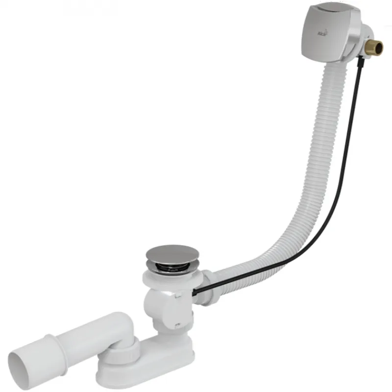 Полуавтоматический слив-перелив для ванны Alcaplast A564KM1-80 изготавливается из высококачественных материалов.Слив-перелив система с функцией наполнения ванны.Аэратор марки Neoperl удобный доступ и замена.Клапан управления из нержавеющей стали.Вода не течет по стенке ванны, что предотвращает налет.Минимальный отступ от стенки системы в ванной видна лишь поворотная накладка.Простая установка тремя винтами из нержавеющей стали.Мокрый гидрозатвор с вращающимся коленом.Закрытие сливного клапана с помощью троса Боудена.Гибкий шланг системы перелива.Боковая подводка с латунной резьбой G1/2 для предварительно подготовленной воды.Длина сифона для ванны 80 см.Технические характеристики:Гидрозатвор: 50 mm.Сток воды: 48,6 l/min.Скорость перелива: 33,6 l/min.Сопротивление гидрозатвора против давления: 588 Pa.Термическая устойчивость: 95 градусов.В комплекте поставки:Корпус сифона с системой перелива.Поворотная стальная накладка, хромированная.Хромированная стальная пробка.Хромированная решетка слива из латуни.Гидрозатвор сифона из полипропилена, сваренный ультразвуковым методом, устойчив к термическим и химическим воздействиям.Монтажный комплект.Профильное уплотнение.