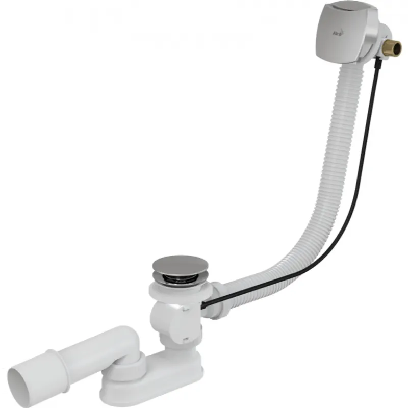 Полуавтоматический слив-перелив для ванны Alcaplast A565KM1-100 изготавливается из высококачественных материалов.Слив-перелив система с функцией наполнения ванны.Аэратор марки Neoperl удобный доступ и замена.Клапан управления из нержавеющей стали.Вода не течет по стенке ванны, что предотвращает налет.Минимальный отступ от стенки системы в ванной видна лишь поворотная накладка.Простая установка тремя винтами из нержавеющей стали.Мокрый гидрозатвор с вращающимся коленом.Закрытие сливного клапана с помощью троса Боудена.Гибкий шланг системы перелива.Боковая подводка с латунной резьбой G1/2 для предварительно подготовленной воды.Длина сифона для ванны 100 см.Технические характеристики:Гидрозатвор: 50 mm.Сток воды: 48,6 l/min.Скорость перелива: 33,6 l/min.Сопротивление гидрозатвора против давления: 588 Pa.Термическая устойчивость: 95 градусов.В комплекте поставки:Корпус сифона с системой перелива.Поворотная стальная накладка, хромированная.Хромированная стальная пробка.Хромированная решетка слива из латуни.Гидрозатвор сифона из полипропилена, сваренный ультразвуковым методом, устойчив к термическим и химическим воздействиям.Монтажный комплект.Профильное уплотнение.