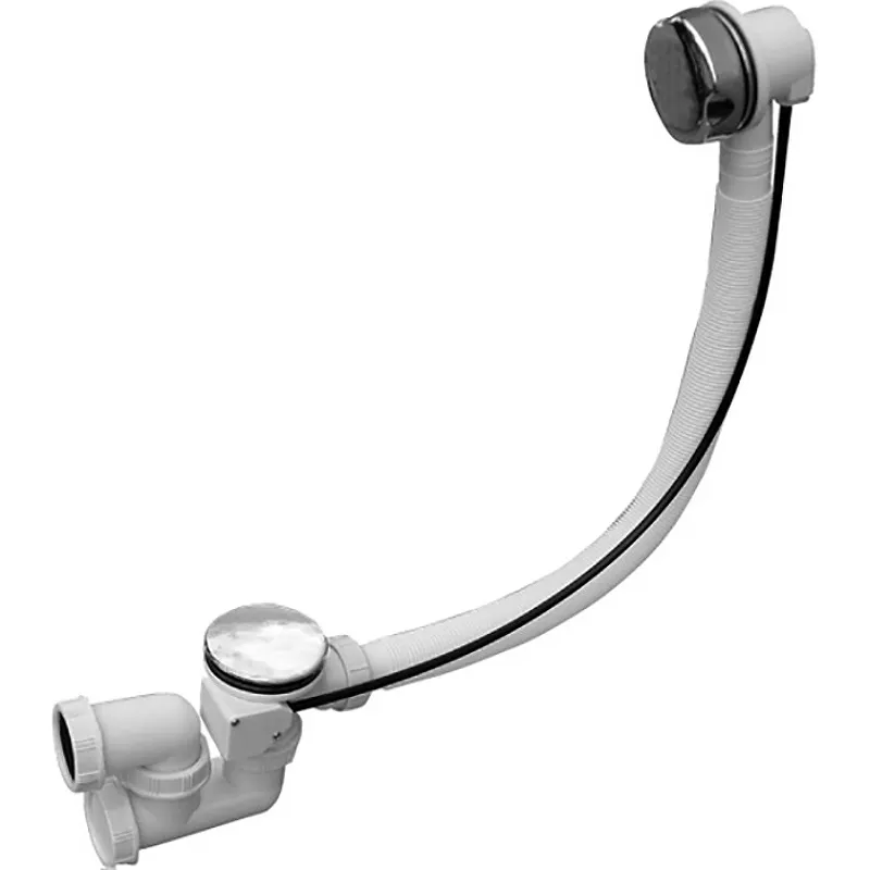 - Эстетичный дизайн слива-перелива: Хромированные накладки Ø74 мм придают изделию стильный вид.