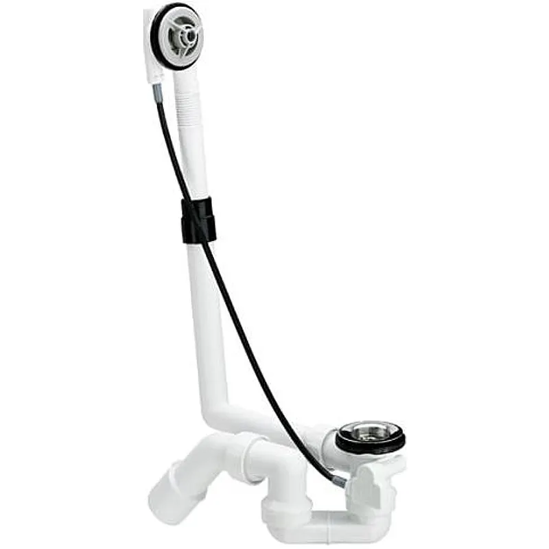Слив-перелив Viega Multiplex 61621 103071 полуавтомат. Функциональный узел для стандартных ванн и душевых поддонов без накладок, с сифоном и отводом 45 градусов. Требуется только 33 мм свободного пространства за ванной.Характеристики: Механизм: полуавтомат. Цвет: хром. Материал: пластик. Высота столба жидкости в гидрозатворе: 50 мм. Пропускная способность при высоте подпора 300 мм: 0,92 л/с. Расход при высоте переполнения на 60 мм выше середины переливного отверстия 0,63 л/с. Длина тросикового механизма: 56 см. Номинальный диаметр: 40/50 мм. Диаметр сливного отверстия ванны: 52 мм. Диапазон регулировки по горизонтали: 100-260 мм. Диапазон регулировки по вертикали: 180-400 мм. В комплекте поставки: Гидрозатвор. Отводящее колено 45 градусов. Хромированная розетка сливного отверстия.