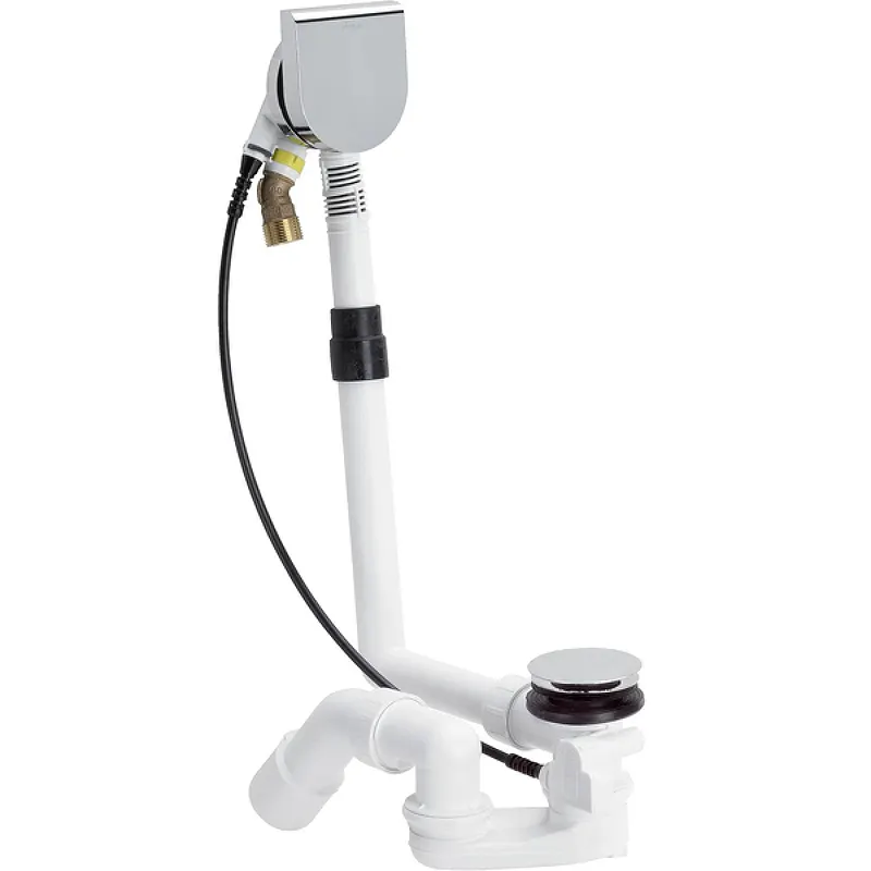 Слив-перелив Viega Multiplex Trio 723347 полуавтомат с наливом.Характеристики: Механизм: полуавтомат. Цвет: хром. Поверхность: глянцевая. Материал: пластик. Слив воды: горизонтальный. Длина трубы до слива: 10-26 см. Высота трубы до слива: 18-40 см. Длина тросикового механизма: 56 см. Высота гидрозатвора: 5 см. Отводящее колено: 45 градусов. Пропускная способность при высоте подпора 30 см: 0,92 л/с. Пропускная способность перелива при высоте подпора на 6 см выше середины перелива: 0,63 л/с. В комплект входит: гидрозатвор; кожух перелива; фановая отводная труба; поворотная розетка; хромированная пробка донного клапана; хромированная розетка сливного отверстия.