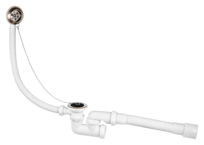 - Простота установки: Гибкая пластиковая гофротруба и пробка на цепочке упрощают процесс монтажа и дальнейшего обслуживания.