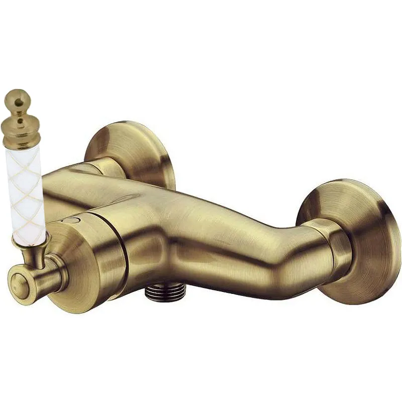 Смеситель для душа Boheme Vogue 204-MR-W.Характеристики: Цвет: бронза. Материал: латунь. Управление: однорычажное. Ручка: стекло Murano белого цвета. Механизм: керамический картридж. Стандарт подводки: G1/2. Монтаж: настенный. В комплекте поставки: Смеситель. Комплект эксцентриков.