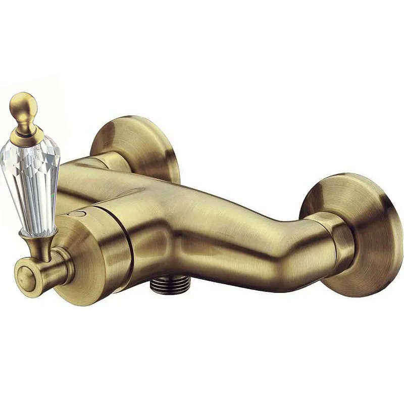 Смеситель для душа Boheme Vogue 204-SW.Характеристики: Цвет: бронза. Материал: латунь. Управление: однорычажное. Ручка декорирована кристаллом Swarovski. Механизм: керамический картридж. Стандарт подводки: G1/2. Монтаж: настенный. В комплекте поставки: Смеситель. Комплект эксцентриков.