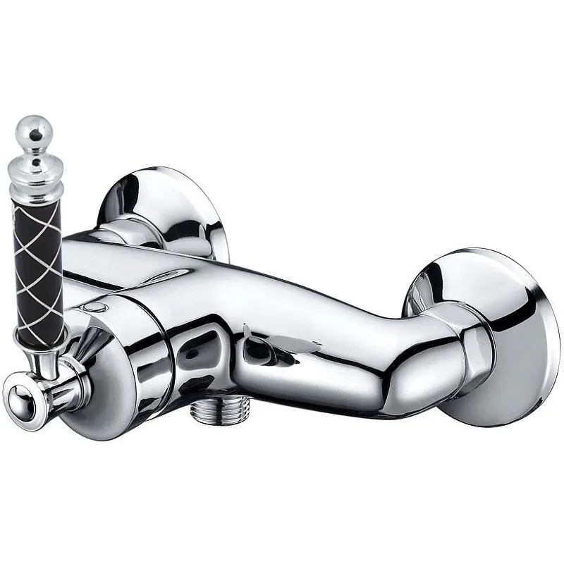 Смеситель для душа Boheme Vogue 224-MR-B.Характеристики: Цвет: хром. Материал: латунь. Управление: однорычажное. Ручка: стекло Murano черного цвета. Механизм: керамический картридж. Стандарт подводки: G1/2. Монтаж: настенный. В комплекте поставки: Смеситель. Комплект эксцентриков.