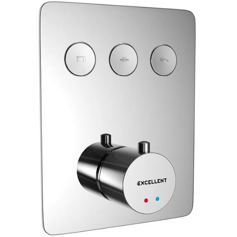 Встраиваемый смеситель для душа Excellent Krotos AREX.8046CR.Технические данные: Цвет: хром. Материал: латунь. Поверхность: глянцевая. Керамический картридж Vernet с системой Easy-Click обеспечивает надежность управления потоком и температурой воды. Переключатель механический на 3 режима (излив, верхний душ, ручной душ). Управление: термостатическое Монтаж: встраиваемый в стену. В комплекте поставки: смеситель (внешняя и внутренняя части).