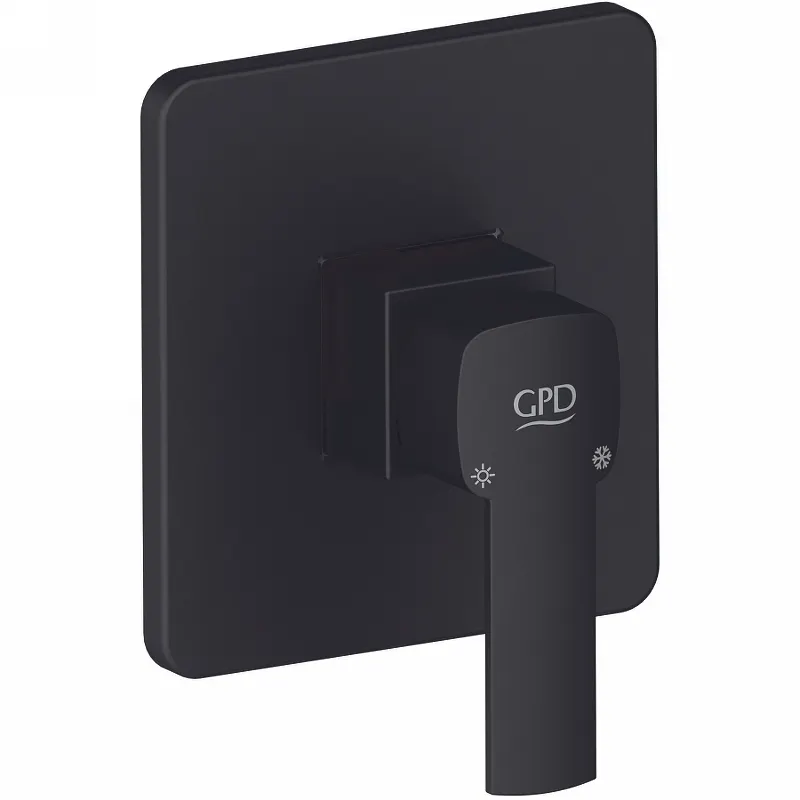 Смеситель для душа GPD Pedra Colored MAD160-S.Характеристики: Цвет: черный матовый. Материал: латунь. Управление: однорычажное. Механизм: керамический картридж 35 мм. Рабочее давление 3-4 бар. Антиизвестковое покрытие. Совместим с проточным водонагревателем. Стандарт подводки: G1/2. Монтаж: встраиваемый. В комплект поставки: Смеситель для душа (внешняя и внутренняя часть).