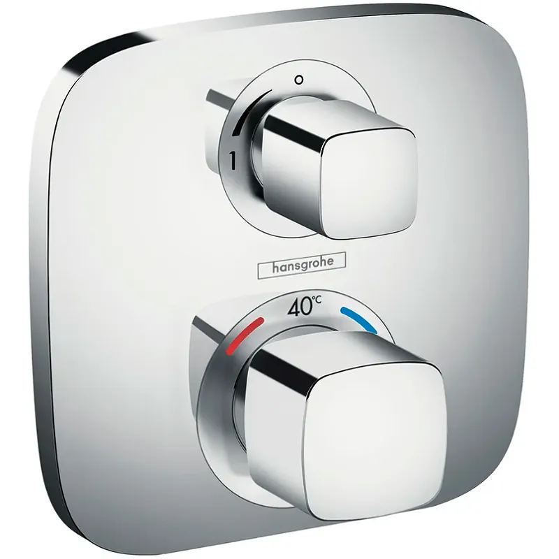 Смеситель для душа Hansgrohe Ecostat E 15707000 с термостатом.Характеристики: Цвет: хром. Материал: латунь. Управление: термостат. Механизм: термостатический картридж. Стандарт подводки: G 3/4. 1 функция. Максимальный объем расхода воды при 3 барах: 26.5 л/мин. Минимальное рабочее давление 1 бар. Максимальный напор воды: 10 бар. Контроль напора. Предохранительная остановка при 40 градусов. Регулируемое ограничение температуры. Монтаж: встраиваемый. В комплекте поставки: Смеситель для душа (внешняя часть). Комплект креплений. Инструкция.