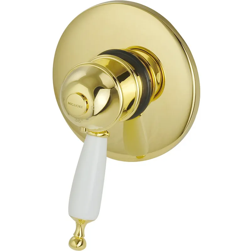Однорычажный встраиваемый смеситель для душа Migliore Oxford 19180 с термостатом.Характеристики: Материал: латунь. Цвет: золото. Поверхность: глянцевая. Лаковое покрытие внешней части смесителя. Механизм: термостатический картридж. Вид крепления: встраиваемый. Вид монтажа: скрытый. Тип подводки: жесткая. Стандарт подводки: G 1/2. Количество монтажных отверстий: 1. Защита от обратного потока. Есть функция ограничения температуры воды. Совместим с проточным водонагревателем. В комплекте поставки: Смеситель (внешняя и внутренняя части).