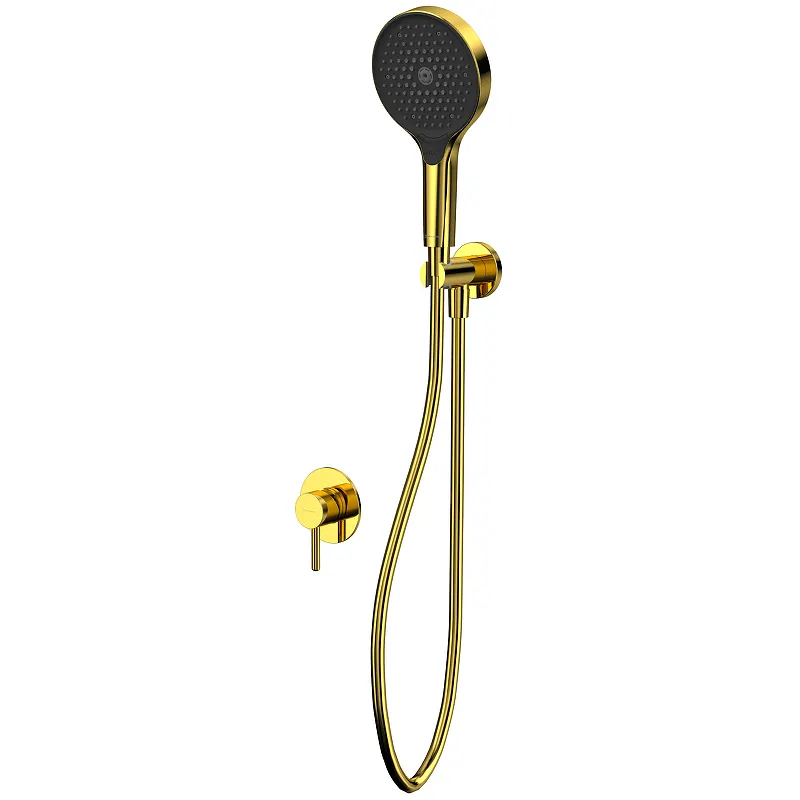 Смеситель для душа Whitecross Y gold YSET02TOPGL с душевым гарнитуром.Характеристики: Цвет: золото. Материал: латунь. Покрытие: PVD. Управление: однорычажное. Механизм: керамический картридж Kerox. Два входа (для горячей и холодной воды) G 1/2. Один выхода смешанной воды G 1/2. Держатель ручного душа с пластиковой вставкой. Размер ручного душа (ШхВ): 132х250 мм. Количество режимов струи ручного душа: 3 (дождь, массаж, туман). Пропускная способность при давлении 3 Бар: 13,5 л/мин. Душевой шланг в пластиковой оплетке, длиной 1500 мм. Двусторонняя защита от скручивания. Отверстия для монтажа: 2. Монтаж: встраиваемый. В комплекте поставки: Смеситель (внешняя и внутренняя часть) Y1245GL. Ручной душ TOP-GL. Душевой шланг SHP150GL. Шланговое подключение с держателем ручного душа Y1005GL.