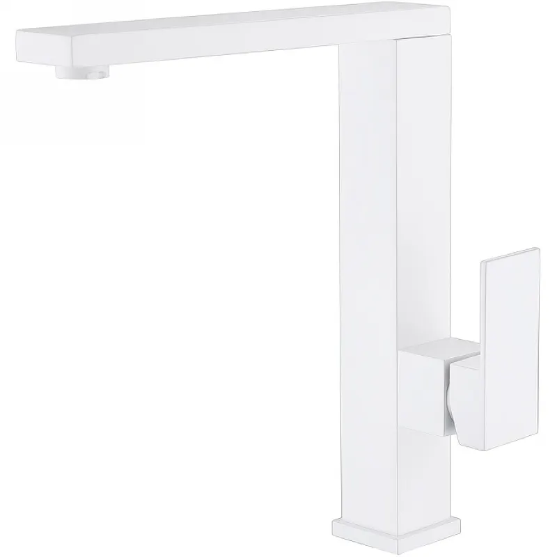 - Белый смеситель для кухни с поворотным изливом: удобство использования благодаря возможности вращения излива.