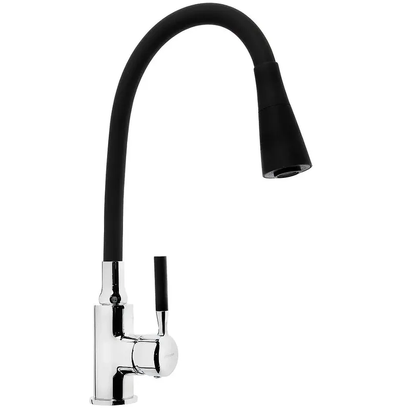 - Гибкий излив: Поворотный и гибкий излив делает этот смеситель идеальным для мытья посуды и наполнения высоких ёмкостей.