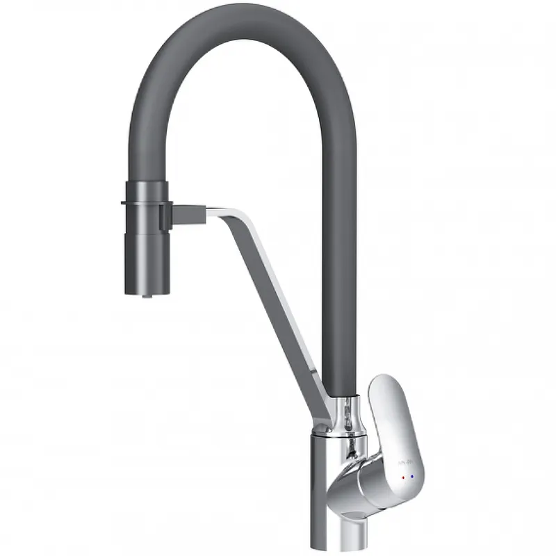 Смеситель для кухонной мойки AM.PM Like F8007802.Характеристики: Материал: латунь, силикон. Цвет: хром, черный. Тип управления: однозахватный. Тип подводки: гибкая. Стандарт подводки: 3/8". Вид излива: поворотный, гибкий. Тип картриджа: AM.PM Soft Motion 35 мм керамический, мультифункциональный. Смеситель оснащен встроенным каналом для питьевой воды. Отверстия для монтажа: 1 отверстие. Монтаж: на мойку. В комплекте поставки: Смеситель. Комплект крепежа. Гибкая подводка (2 шт.). Инструкция.
