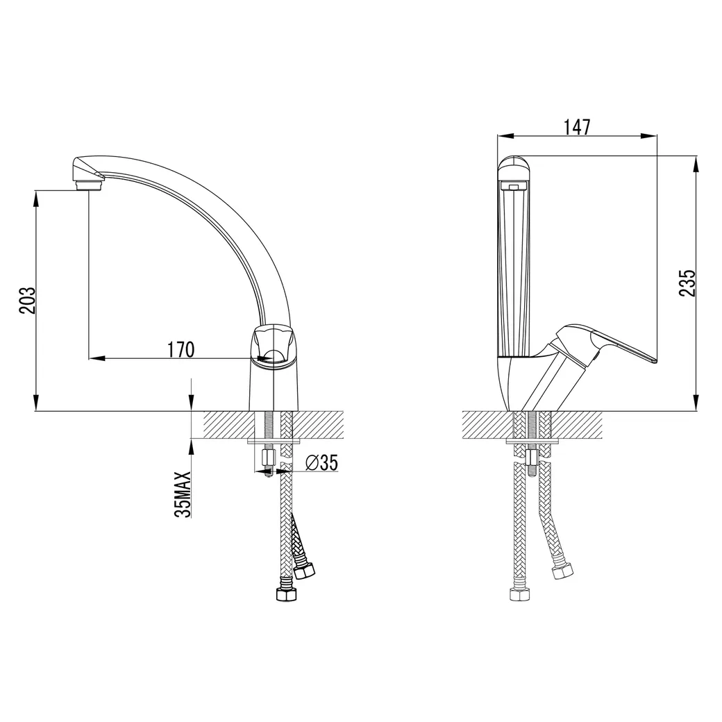 Смеситель для кухни Azario поворотный излив, керамический картридж арт-AZ-HU245902