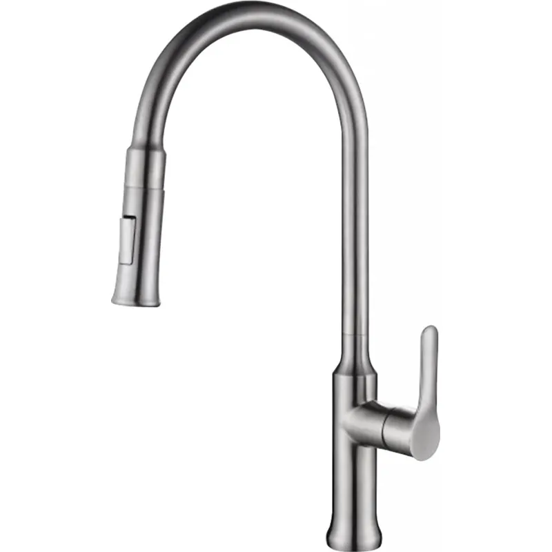 - Удобство использования: Высокий поворотный и выдвижной излив с режимом душа позволяет легко мыть посуду и наполнять емкости, обеспечивая максимальный комфорт.