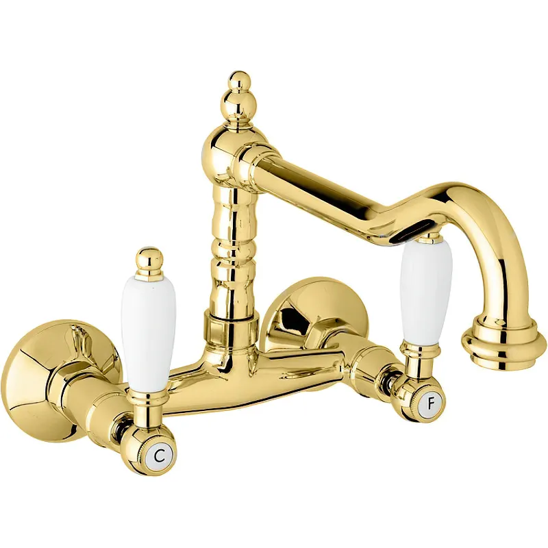 Смеситель для кухни Cezares First-LLP-03/24-Bi — идеальное решение для тех, кто ценит роскошь и качество. Этот настенный двухвентильный смеситель с поворотным изливом и аэратором выполнен в изысканном золотом цвете 24 карат, что придаст вашей кухне элегантность и стиль. Благодаря использованию латуни с глянцевым покрытием, данный смеситель не только устойчив к царапинам, но и защищен от коррозии, что гарантирует долгий срок эксплуатации.