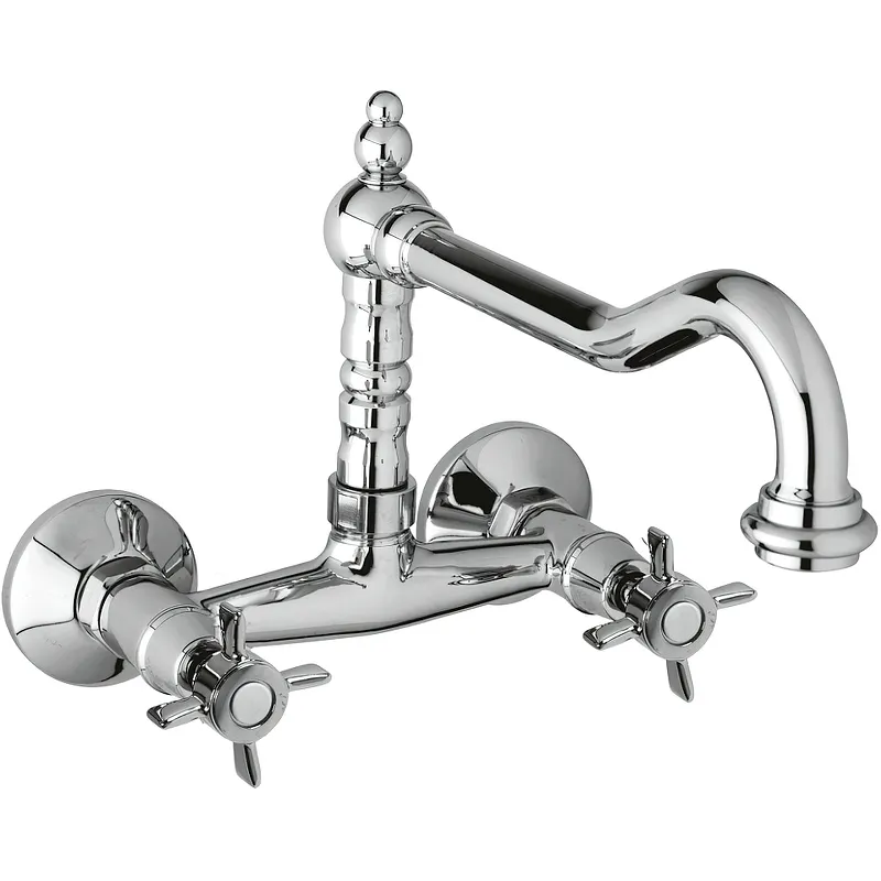 Смеситель для кухни Cezares Lord-LLP-01.Поможет в создании изысканного классического или ретро стиля Вашей кухни.Характеристики: Цвет: хром. Материал: латунь. Управление: вентильное. Механизм: керамическая кран-букса. Излив: поворотный с аэратором. Стандарт подключения: G 1/2. Отверстия для монтажа: 2 отверстия. Монтаж: на стену. Рабочий интервал давления: 0,5-6,0 Атм. В комплекте поставки: Смеситель. Аэратор.