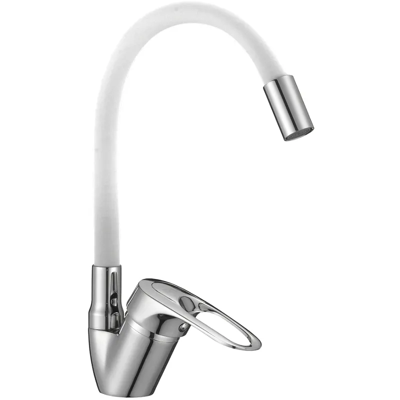 - Эстетичный дизайн: Хромированное и белое покрытие придают смесителю современный вид, идеально подходящий для любой кухни.