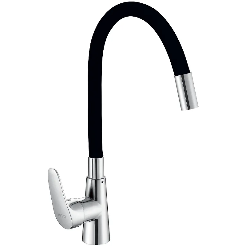 - Долговечность и стиль: Изготовленный из силумина, данный смеситель устойчив к коррозии, а его хромированная и черная поверхность придаст вашей кухне современный вид.
