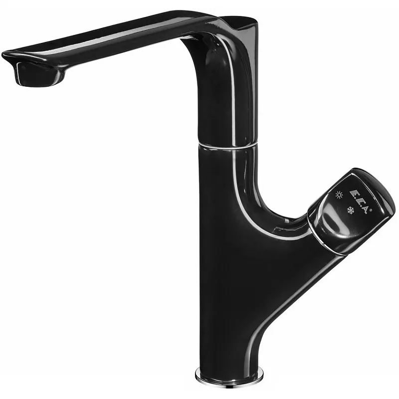 - Элегантный дизайн: Черный глянец и глянцевая эмаль придают смесителю стильный и современный вид, который украсит любую кухню.