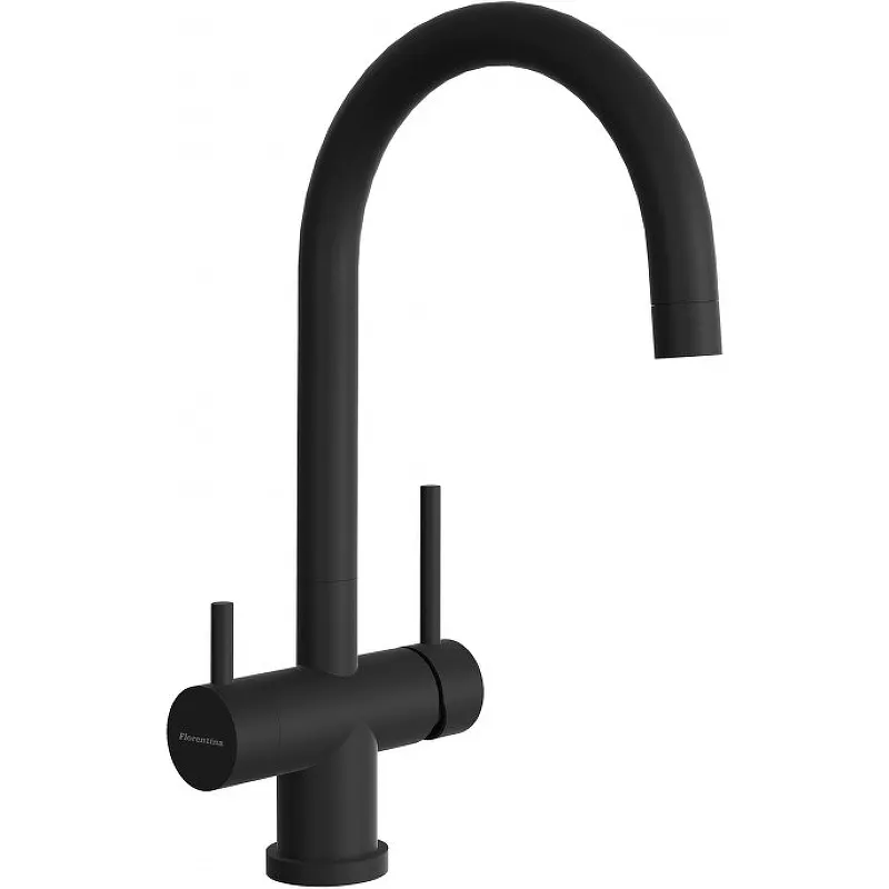 Смеситель для кухни Florentina Клио Fl Ультра 333.13Н.2123.501.Характеристики: Цвет: нуар (черный матовый). Материал: нержавеющая сталь. Покрытие: под камень. Механизм: керамический картридж 35 мм. Излив: поворотный. Отдельный канал для питьевой воды. Тип управления: однорычажный. Гибкая подводка: G 1/2. Монтаж: на мойку. В комплекте поставки: Смеситель. Гибкая подводка. Крепления.