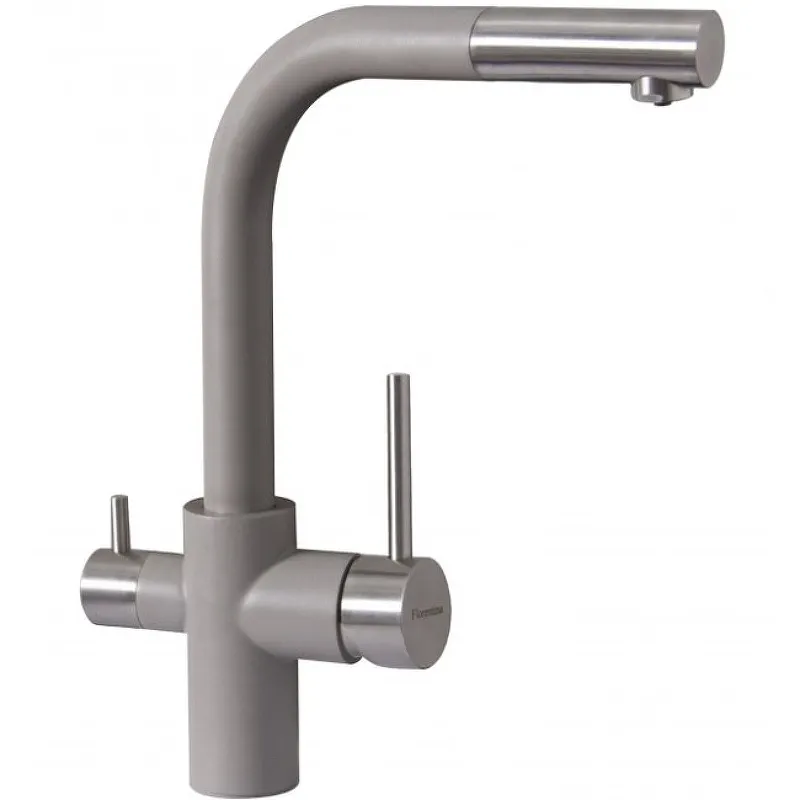 Смеситель для кухни Florentina Кристалл 333.32H.2123.305 с функцией фильтрации воды и выдвижным изливом.Характеристики: Цвет: грей. Материал: латунь. Размер решетки (ШхВхД): 52х342х293 мм. Тип смесителя: однорычажный. Выдвижной излив. Подключение под фильтр. Керамический картридж 40 мм. Излив: поворотный. Монтаж: на раковину. В комплекте поставки: Смеситель. Гибкая подводка.