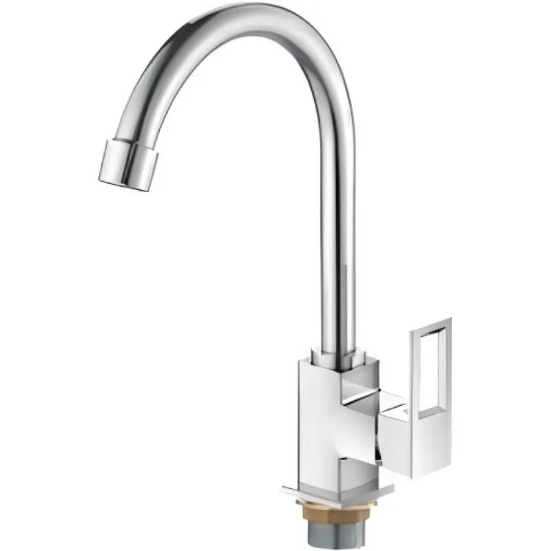 Смеситель для кухни Frap F40552.Характеристики: Материал: силумин. Цвет: хром. Управление: однорычажный, расположение рычага сбоку. Высокий поворотный излив. Керамический картридж 25 мм. Способ монтажа: на одно отверстие, на гайке. С аэратором. В комплекте поставки: Смеситель. Гибкая подводка. Комплект креплений.