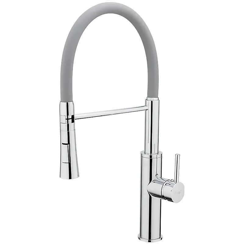 Смеситель для кухни Frap F4452-6 с гибким изливом.Характеристики: Цвет: хром, серый. Материал: латунь. Управление: однорычажное. Поворотный гибкий излив. Монтаж: на мойку, на столешницу. Механизм: керамический картридж. Стандарт подводки: G 1/2. Тип подводки: гибкая подводка. Аэратор. Две функции струи: стандартный водяной поток / душ. В комплекте поставки: Смеситель. Гибкая подводка. Комплект креплений.