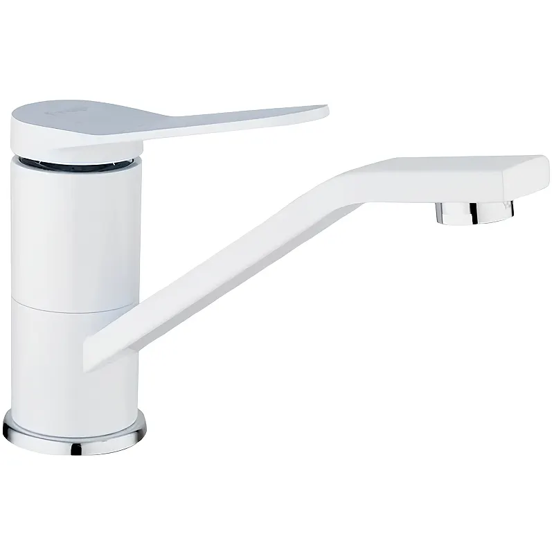 Смеситель для кухни Frap H45 F4545.Характеристики: Цвет: белый, хром. Материал: латунь. Управление: рычажное. Излив: поворотный. Монтаж: на мойку. Тип крепления: гайка. Механизм: керамический картридж. Стандарт подводки: G 1/2. Тип подводки: гибкая подводка. Аэратор. В комплекте поставки: Смеситель. Гибкая подводка. Комплект креплений.