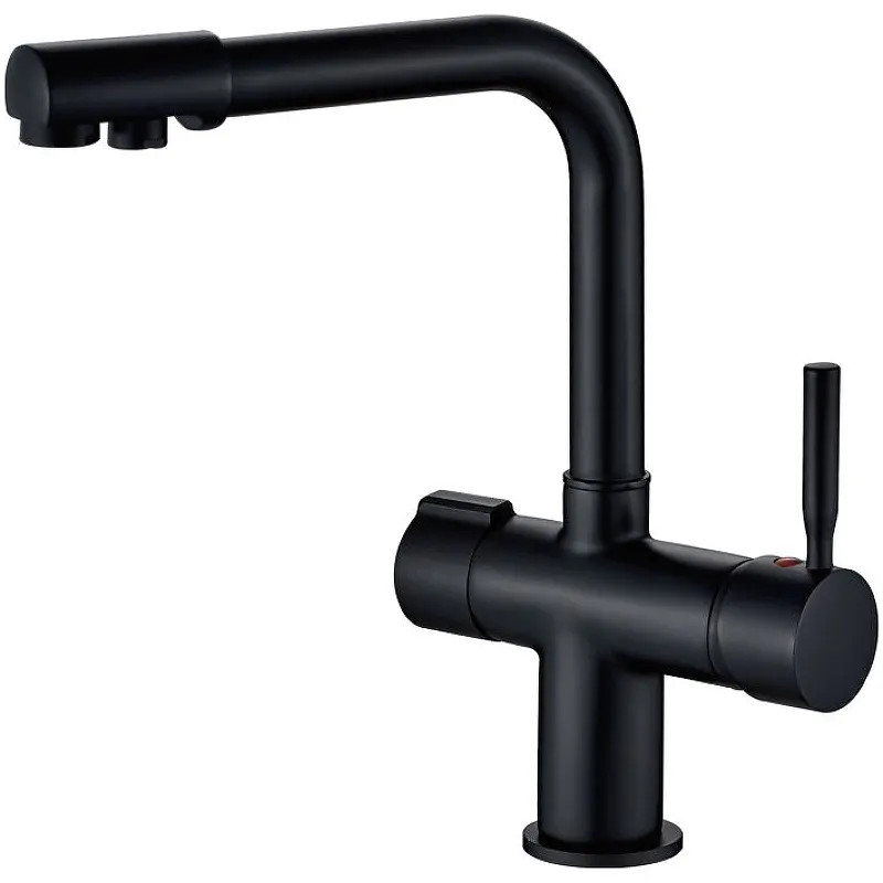 Смеситель для кухни Haiba HB70088-7.Имеет оригинальный современный дизайн, который разнообразит Вашу кухню. Смеситель можно одновременно подключить к водопроводной воде и к фильтру с питьевой водой.Характеристики: Цвет: черный. Материал: латунь. Поверхность: матовая. Управление: однорычажное. Механизм: керамический картридж 35 мм. Механизм включения фильтра: кран-букса, угол поворота 90 градусов. Аэратор. Поворотный излив. Тип подводки: гибкая, 40 см. Стандарт подводки: 1/2. Монтаж: на мойку. Количество монтажных отверстий: 1. В комплекте поставки: смеситель.