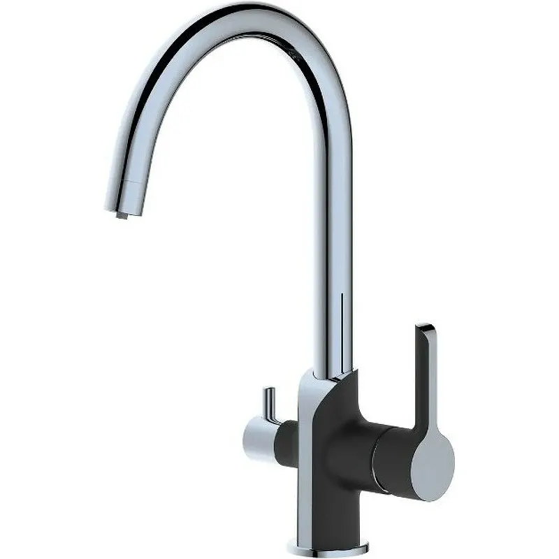 Кухонный смеситель Haiba HB76805-7 идеально подходит для современных кухонь, благодаря своему стильному черному матовому хромированному покрытию. Этот однорычажный смеситель для мойки оснащён поворотным изливом с каналом для питьевой воды, что делает его практичным и функциональным выбором.