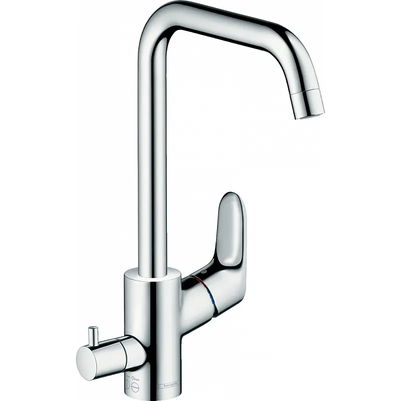 Смеситель для кухни Hansgrohe Focus 31823000 с запорным вентилем.Характеристики: Цвет: хром. Материал: латунь. Управление: однорычажное. Механизм: керамический картридж. Излив: поворотный. Диапазон поворота регулируется на 3 уровня: на 110 градусов, 150 градусов или 360 градусов. Стандарт подводки: G 3/8. Тип подводки: гибкая. Максимальный объем расхода воды при 3 барах: 12 л/мин. Регулируемое ограничение температуры. Совместимость с проточными водонагревателями. Технология Air Power: экономия воды благодаря смешиванию воды с воздухом. Аэратор с функцией Quick-Clean: защита от известковых отложений. Запорный вентиль устройства. Монтаж: на мойку. В комплекте поставки: Смеситель для кухни. Гибкая подводка. Аэратор. Комплект креплений. Инструкция.