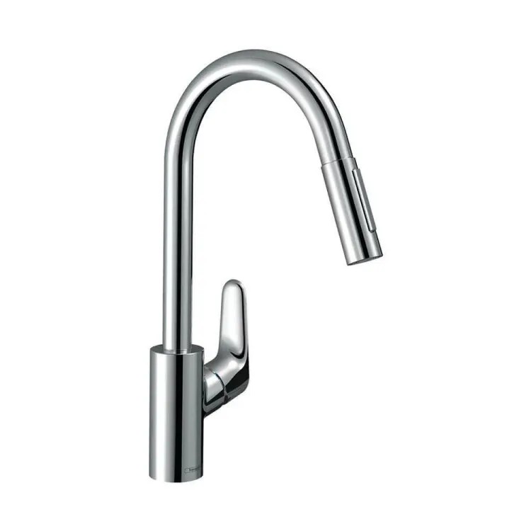 Смеситель для кухни, Hansgrohe, Focus M41, Eco, тип открывания воды-однорычажный, тип регулирования воды-керамический картридж, монтаж-на раковину/столешницу, отверстия для монтажа-1, высота, мм-406, вынос излива, мм-220, тип излива-выдвижной, поворотный, 2 режима стури-ламинарная струя, душевая струя, магнитная система крепления душа MagFit, тип подводки-гибкая, стандарт подвода воды-3/8", цвет-хром арт-31833000