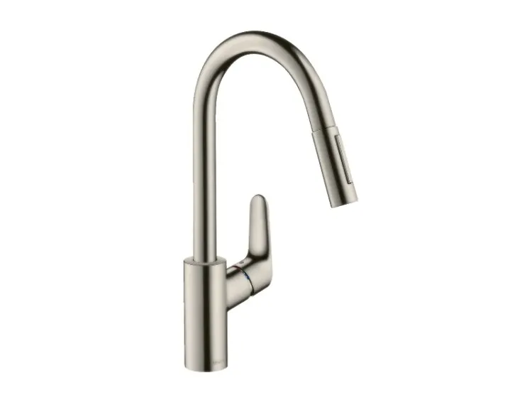 Смеситель для кухни, Hansgrohe, Focus M41, sBox, тип открывания воды-однорычажный, тип регулирования воды-керамический картридж, монтаж-на раковину/столешницу, отверстия для монтажа-1, высота, мм-406, вынос излива, мм-220, тип излива-выдвижной, поворотный 110° или 150°, переключение струи в исходное положение нажатием кнопки, магнитная система крепления душа MagFit, тип подводки-гибкая, стандарт подвода воды-3/8", цвет-сталь арт-73880800