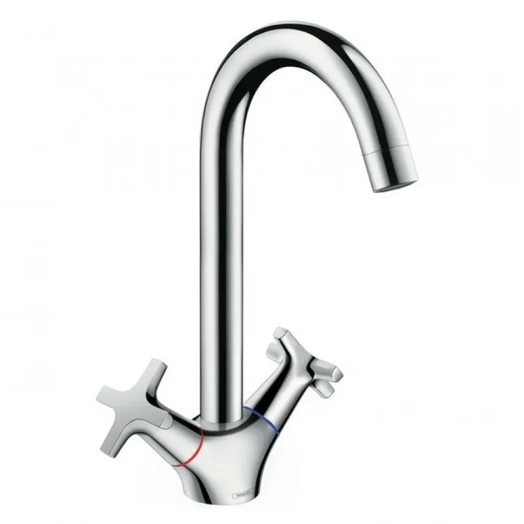 Смеситель для кухни, Hansgrohe, Logis M32, Eco, тип открывания воды-двухвентильный, тип регулирования воды-керамическая кран-букса, монтаж-на раковину/столешницу, отверстия для монтажа-1, высота, мм-283, вынос излива, мм-145, тип излива-поворотный, тип подводки-гибкая, стандарт подвода воды-3/8", цвет-хром арт-71283000