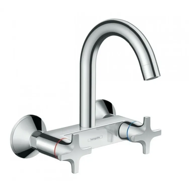 Смеситель для кухни, Hansgrohe, Logis M32, Eco, тип открывания воды-двухвентильный, тип регулирования воды-керамическая кран-букса, монтаж-настенный, отверстия для монтажа-2, высота, мм-195, вынос излива, мм-144, тип излива-поворотный, стандарт подвода воды-1/2", цвет-хром арт-71284000
