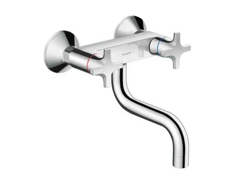 Смеситель для кухни, Hansgrohe, Logis M32, тип открывания воды-двухвентильный, тип регулирования воды-керамическая кран-букса, монтаж-настенный, отверстия для монтажа-2, высота, мм-152, вынос излива, мм-150, стандарт подвода воды-1/2", цвет-хром арт-71287000