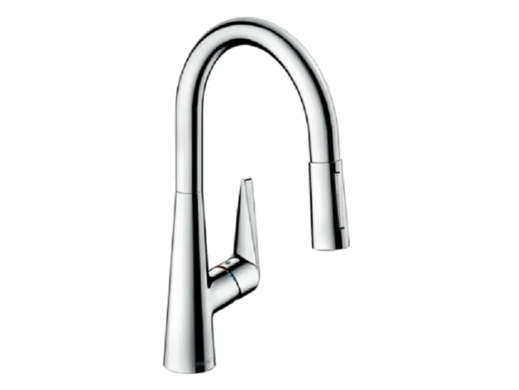 Смеситель для кухни, Hansgrohe, Talis M51, тип открывания воды-однорычажный, тип регулирования воды-керамический картридж, монтаж-на раковину/столешницу, отверстия для монтажа-1, высота, мм-400, вынос излива, мм-213, тип излива-выдвижной, поворотный на 110° или 150°, переключение струи в исходное положение нажатием кнопки, магнитная система крепления душа MagFit, тип подводки-гибкая, стандарт подвода воды-3/8", цвет-хром арт-73851000