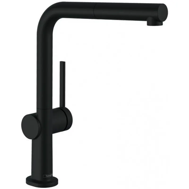 Смеситель для кухни Hansgrohe Talis M54 72808670.Характеристики: Цвет: черный матовый. Материал: латунь. Управление: однорычажное. Механизм: керамический картридж. Излив: поворотный, выдвижной. Диапазон поворота регулируется на 4 уровня: на 60, 110, 150 или 360 градусов. Душевой шланг Quick-Connect. Длина удлинения: до 500 мм. Стандарт подводки: G 3/8. Тип подводки: гибкая. Максимальный объем расхода воды при 3 барах: 8 л/мин. Регулируемое ограничение температуры. Совместимость с проточными водонагревателями. Встроенный клапан обратного тока воды. Аэратор с функцией Quick-Clean: защита от известковых отложений. Монтаж: на мойку. В комплекте поставки: Смеситель для кухни. Гибкая подводка. Аэратор. Комплект креплений. Инструкция.