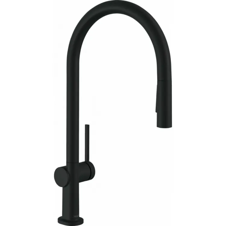 Смеситель для кухни, Hansgrohe, Talis M54, Eco, тип открывания воды-однорычажный, тип регулирования воды-керамический картридж, монтаж-на раковину/столешницу, отверстия для монтажа-1, высота, мм-435, вынос излива, мм-223, тип излива-выдвижной, поворотный 60°, 110°, 150° или 360°, душевой шланг Quick-Connect, тип подводки-гибкая, стандарт подвода воды-3/8", цвет-черный матовый арт-72842670